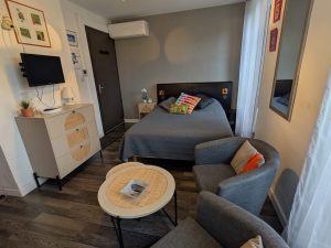 Il porte bien son nom : accessible par un petit escalier, comme un petit chalet à côté de la Villa, ce studio pour 2 personnes offre une indépendance unique avec son espace cuisine équipée, à l’entrée, ouvert sur une pièce à vivre avec lit et canapé-lit, sa salle de bain avec lave-linge et sa terrasse privée.