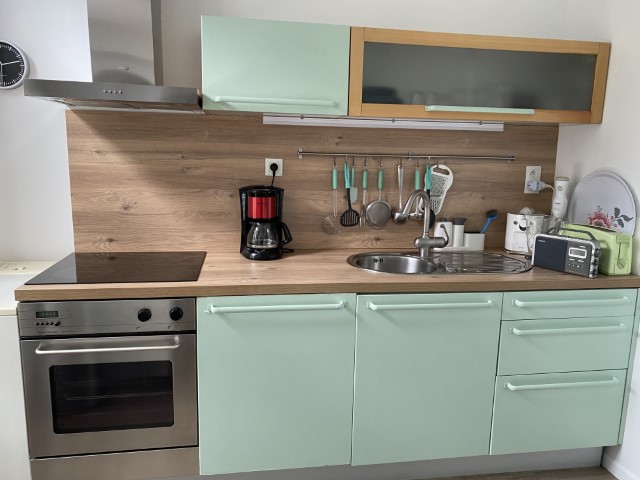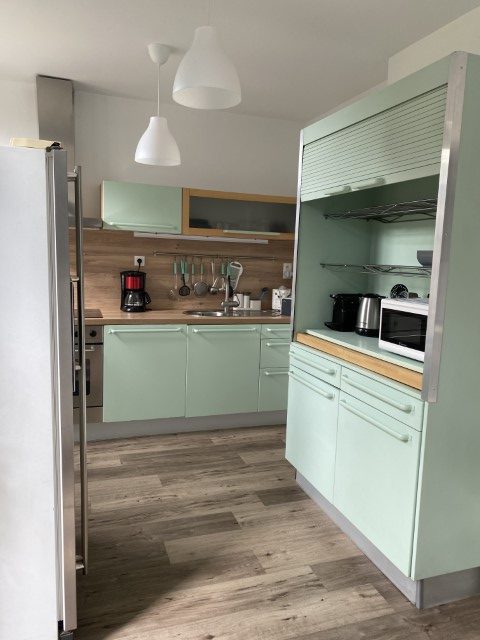 La cuisine est équipée d’un lave-vaisselle et d’un lave-linge.